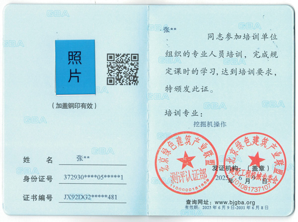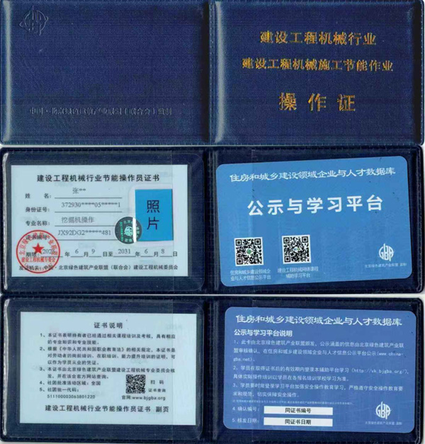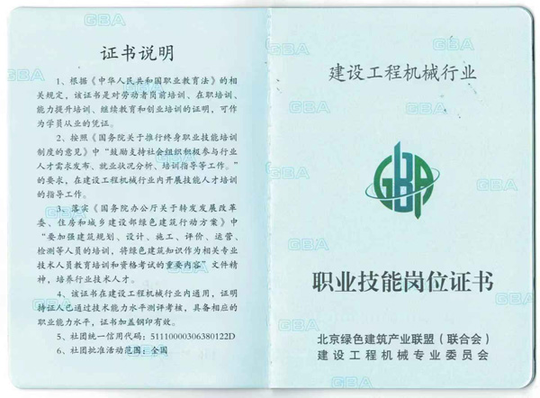 4、 该证书在建设工程机械行业内通用,证明持证人已通过技术能力水平测评考核,具备相应的职业能力水平,证书加盖钢印有效。